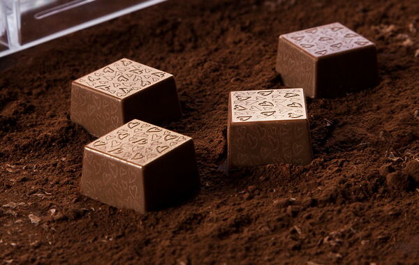 For one customer we were allowed to implement a praline mould with 9 cavities with individual design. Within the framework of our Chocividual – projects we can also create customized designs like this.