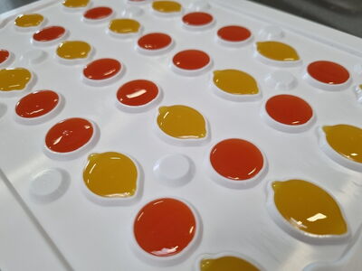 Auch besteht durch die Formen die Möglichkeit, 3D Artikel zu produzieren. So beeindrucken die Jellys, z.B. Erdbeeren oder Zitronen, durch ihre sehr detailreiche und ästhetische Ausformung.